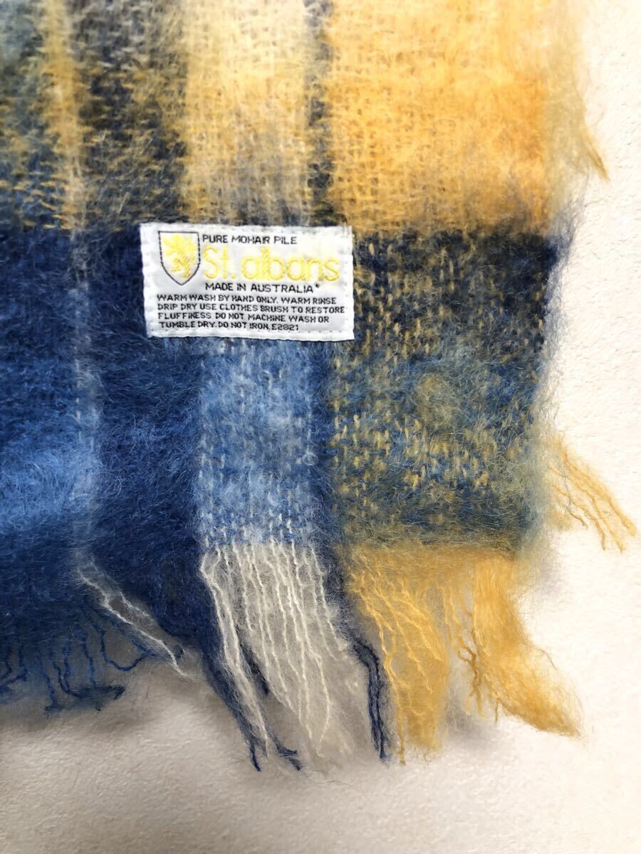 > St.Albans オーストラリア製 最高級ロングモヘア ブランケット 毛布 ひざ掛け チェック柄 イエロー ブルー ヴィンテージ セントアルバンス