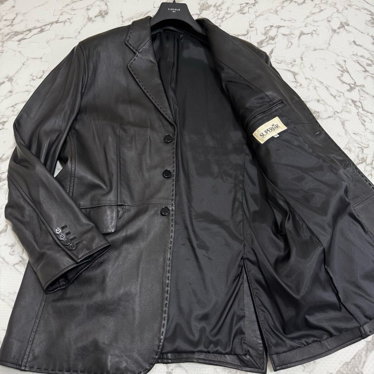 > 未使用級・XL相当!!!SUPERIOA 【極上のラムレザー】レザージャケット テーラードジャケット 羊革 本革 ブラック 50
