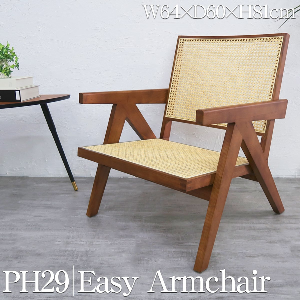 > ラタンチェア 籐編み ラウンジチェア 北欧 イージーチェア ジャンヌレ 一人掛け リビングチェア 椅子 ローチェア 木製 おしゃれ PH29BR