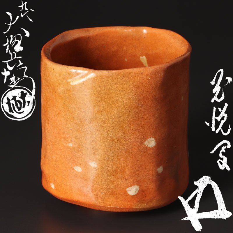> 【古美味】九代大樋長左衛門造『鵬雲斎書付』光悦雪片写 茶碗 茶道具 保証品 9QCd