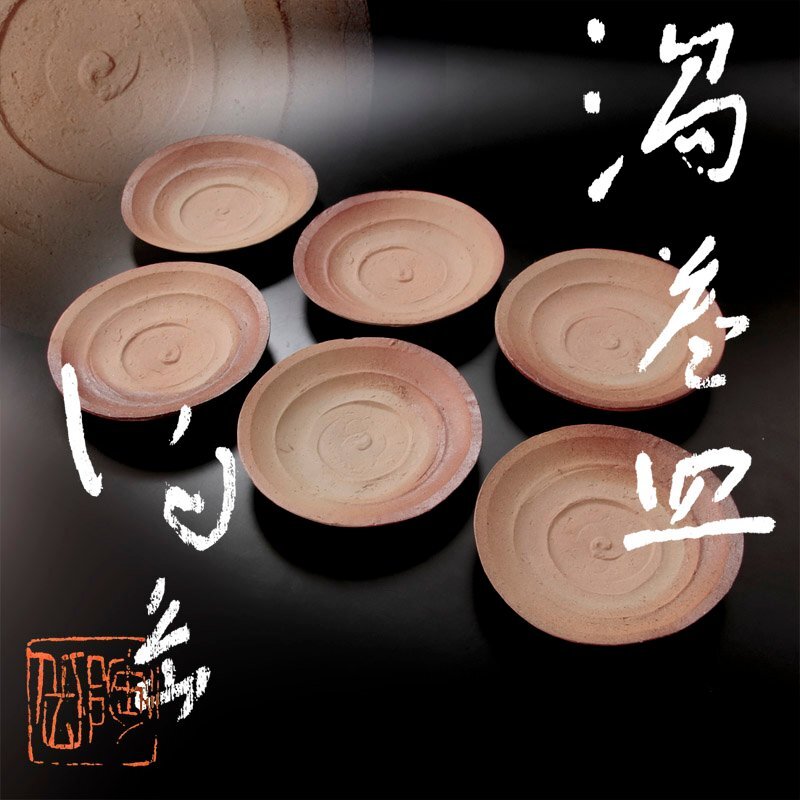 - 【古美味】寒風大窯 森陶岳作 渦巻皿 六客 茶道具 保証品 rQD1