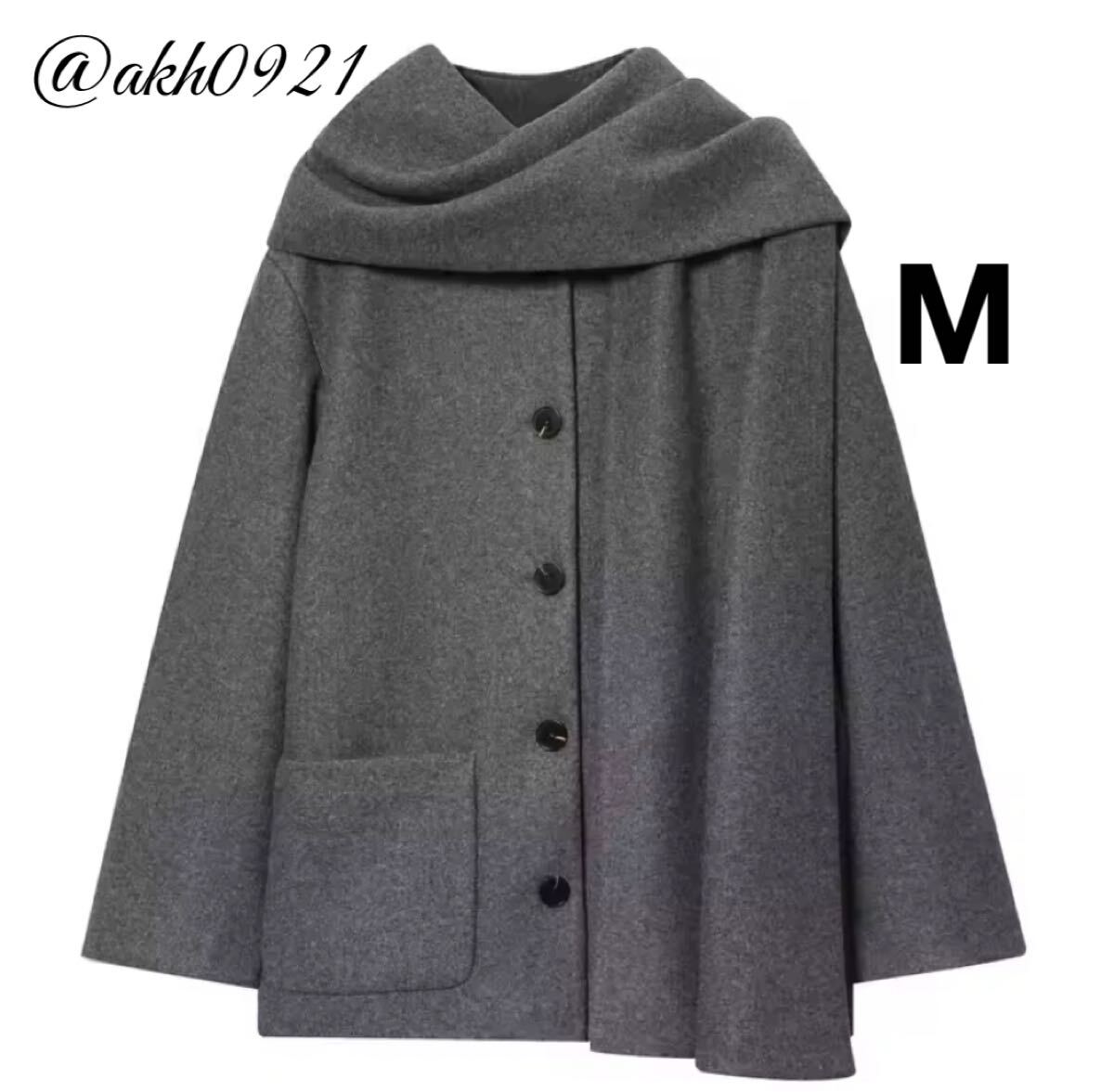- 新品★秋新作★vintage ヴィンテージ レトロ グレー マフラー ハーフ丈 ショート コート アウター Mサイズ レディース★ZARA 好きな方に