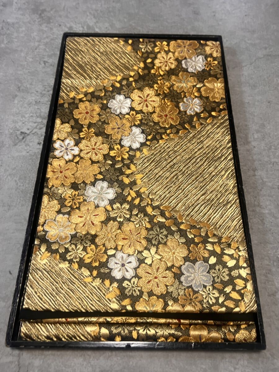 - 帯 絢爛 黒金 袋帯 正絹 きもの 織物 金箔 礼装 晴着