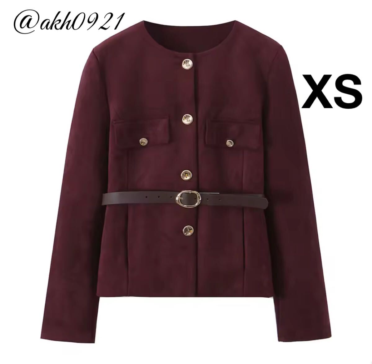 - 新品★秋新作★vintage ヴィンテージ レトロ ベルト付き スエード ノーカラージャケット アウター XSサイズ レディース★ZARA 好きな方に