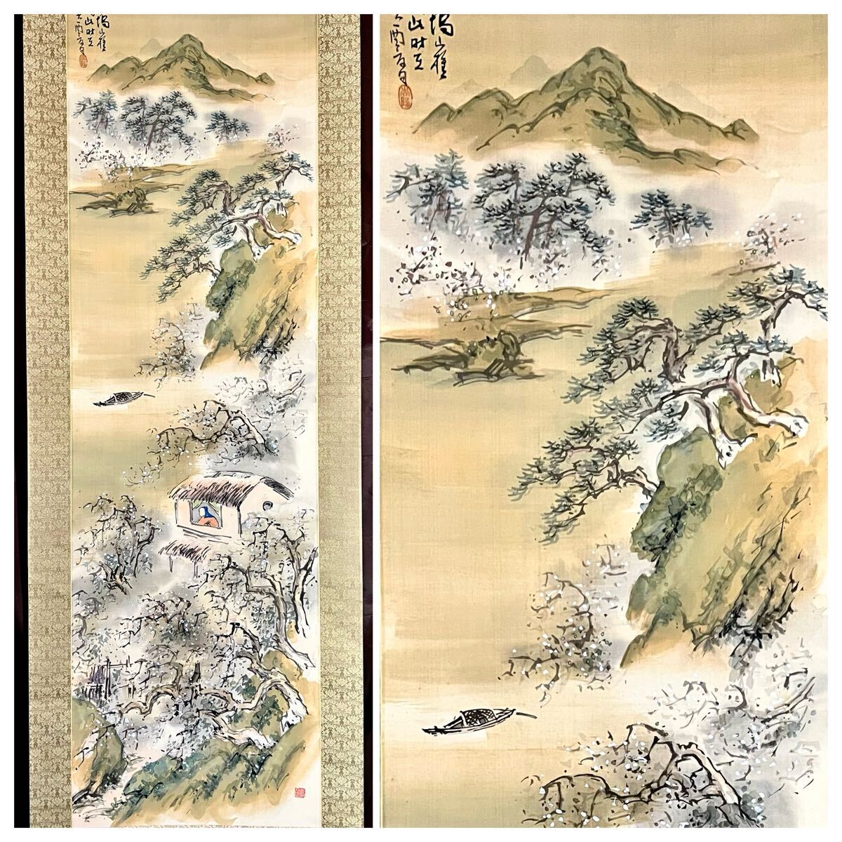 【真作】【仙】後藤杏塢「梅花待屋図」絹本 肉筆 共箱 二重箱 山水図 絵画 掛軸 大正-昭和時代の日本画家 長野の人 師: 橋本関雪 前田青邨