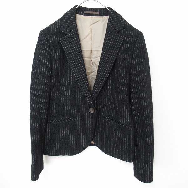 【ブランド】ポール・スチュアート PaulStuart【アイテム】ジャケット【表記サイズ】8【平置き実寸】肩幅:約 39.5cm袖丈:約 60cm身幅:約 44cm着丈:約 56.5cm【状態】目立った傷汚れなし【備考】-【色】ブラック系【素材】画像をご参照ください。★当店の商品はすべてリユースアイテムとなります。特質上、些細なダメージは記載しておりませんので着用に問題のない使用感、着古した雰囲気などはご了承くださいませ。キーワード/アクイール/古着/used/ビンテージ/ヴィンテージ/昭和/レトロ/三陽商会/ウールジャケット/ロゴボタン