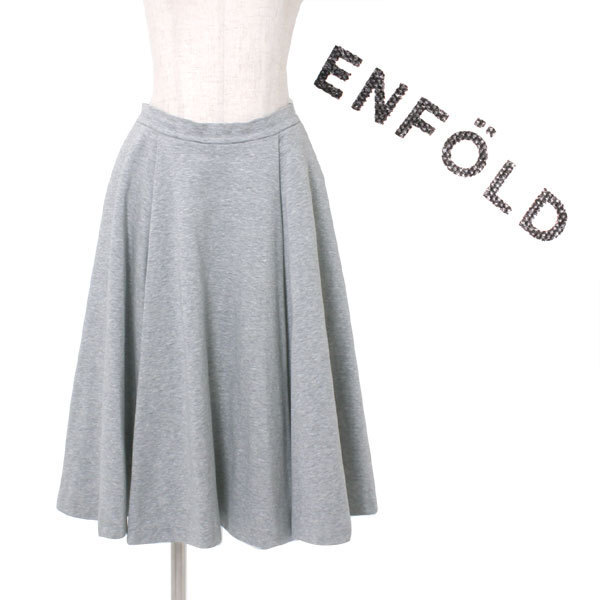 - ENFOLD シルエット ボンディング タック フレアスカート 定価36,000円 size38 グレー 3007A131-0450 エンフォルド