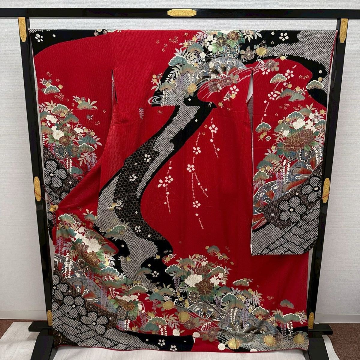 - 振袖 金彩 絞り 華やか 裄67 素敵なデザイン 正絹 着物 W-5003