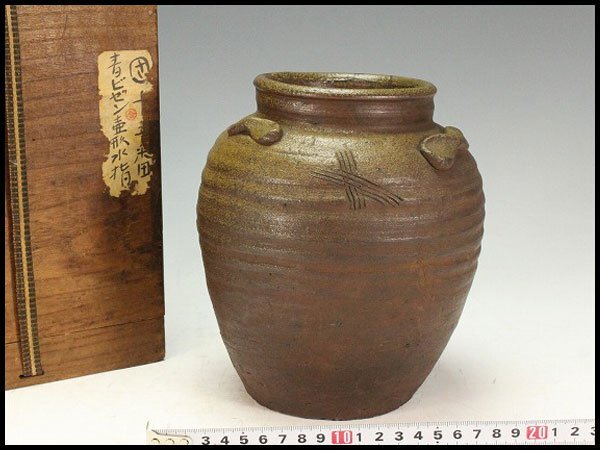- 【金閣】古備前 三耳壺 江戸時代 六古窯 旧家蔵出 送料無料(XA852)