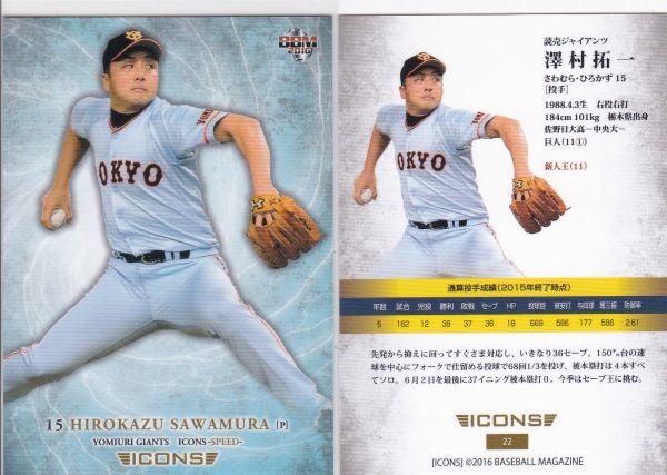 > ●2016BBM/ICONS 【澤村 拓一】 BASEBALL CARD No.22:巨人 R2