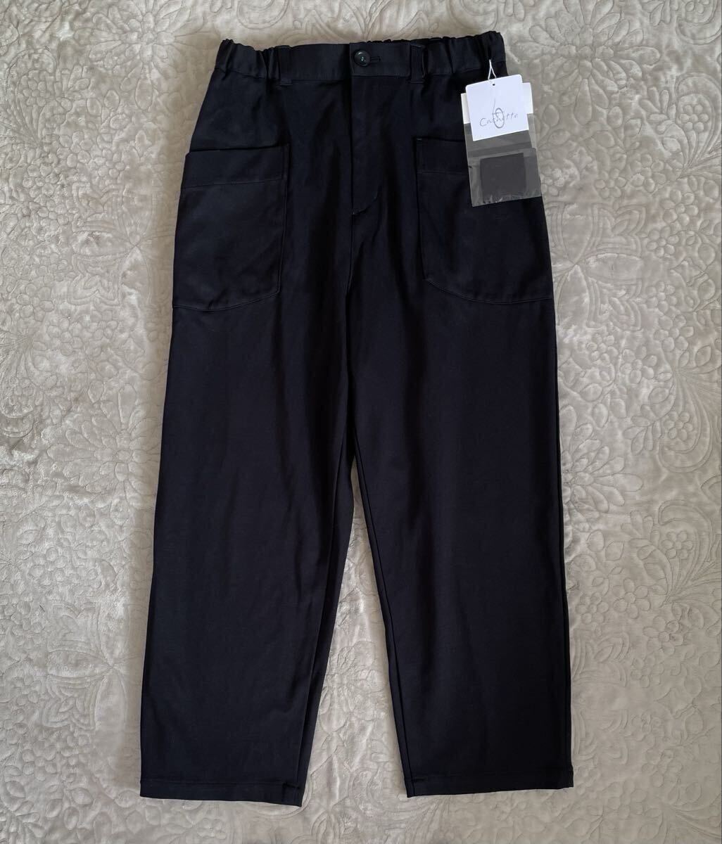 > 未使用タグ付きMB LUCAS Cachetteイージー パンツ ウエストゴム クロップド 黒×緑テーパード 定価16,000円レーヨン ナイロン 日本製
