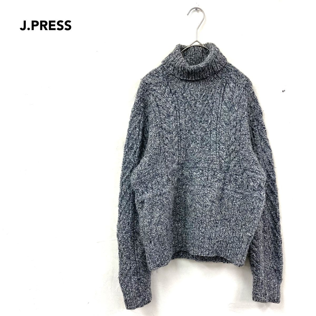- 2O2439-Q◆J.PRESS ジェイプレス セーター タートルネック ケーブルニット トップス 長袖 メンズ 秋冬◆size M グレー 灰 ウール100