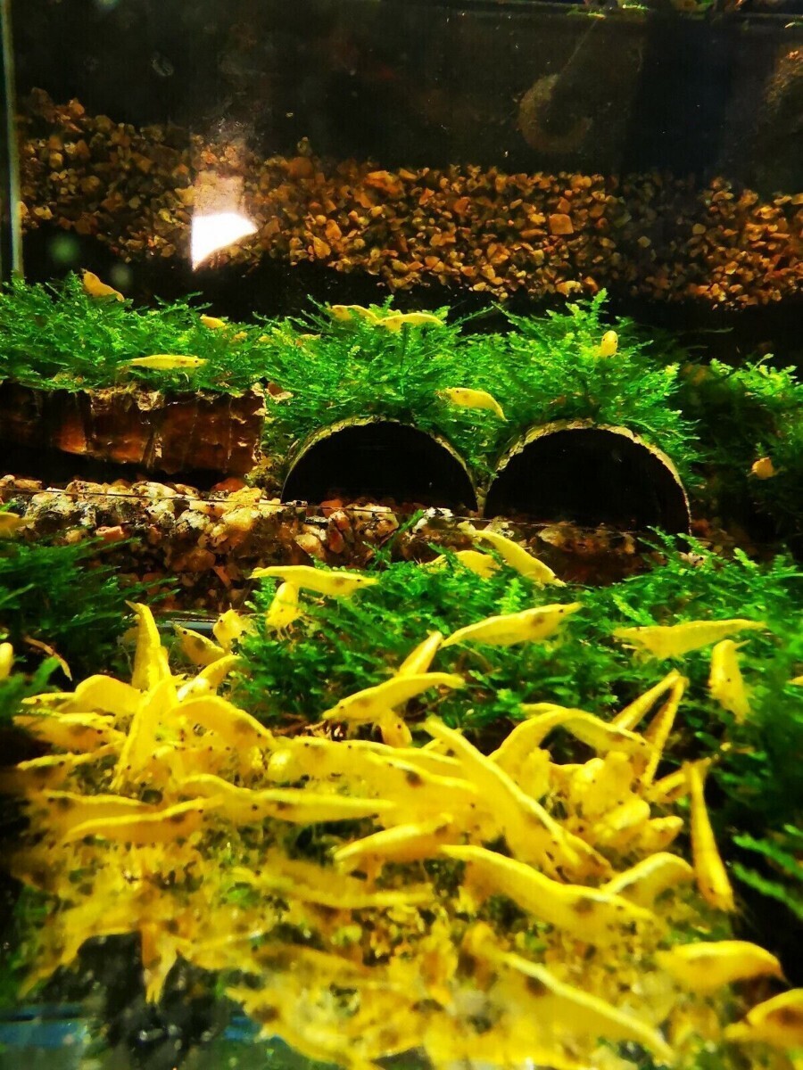 > 【初心者向け&高グレード混合】イエローチェリーシュリンプ40匹セット 鮮やかなレモンイエロー