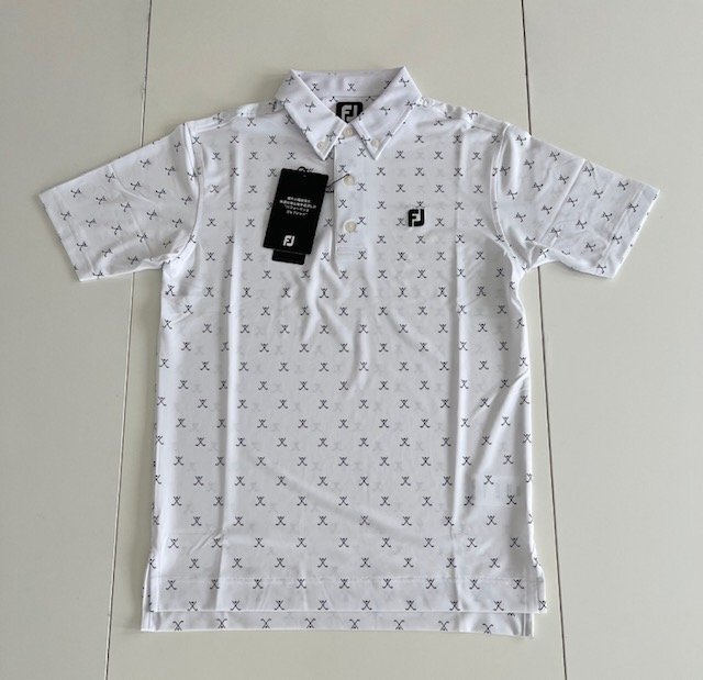 - FJ フットジョイ クロスクラブプリント 半袖ボタンダウンシャツ FJ-S23-S05 (ホワイト) M