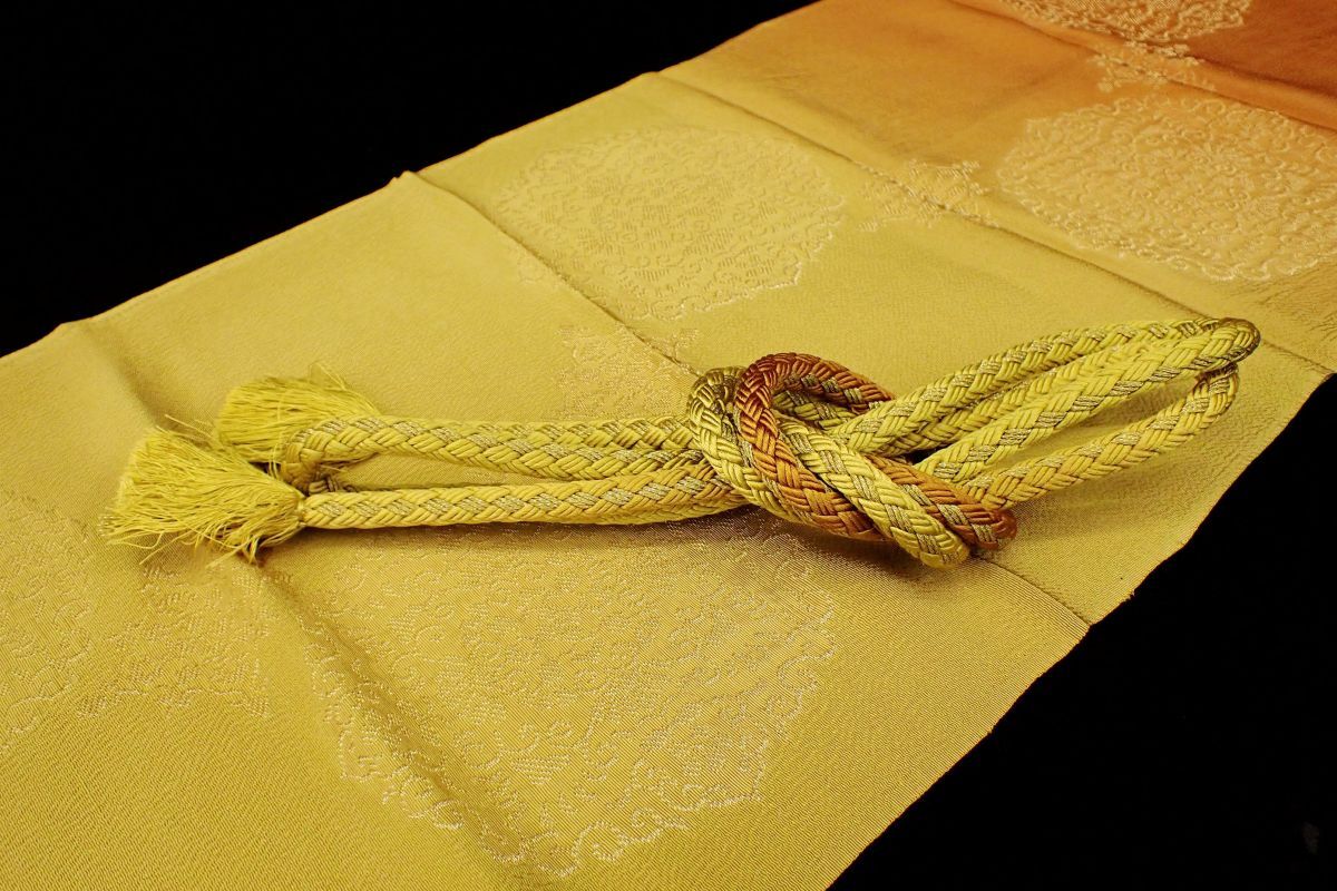 - ▲和装品212 美品 帯揚げ/帯締め 2点▲正倉院御物/正絹/着物/黄・橙色系/消費税0円