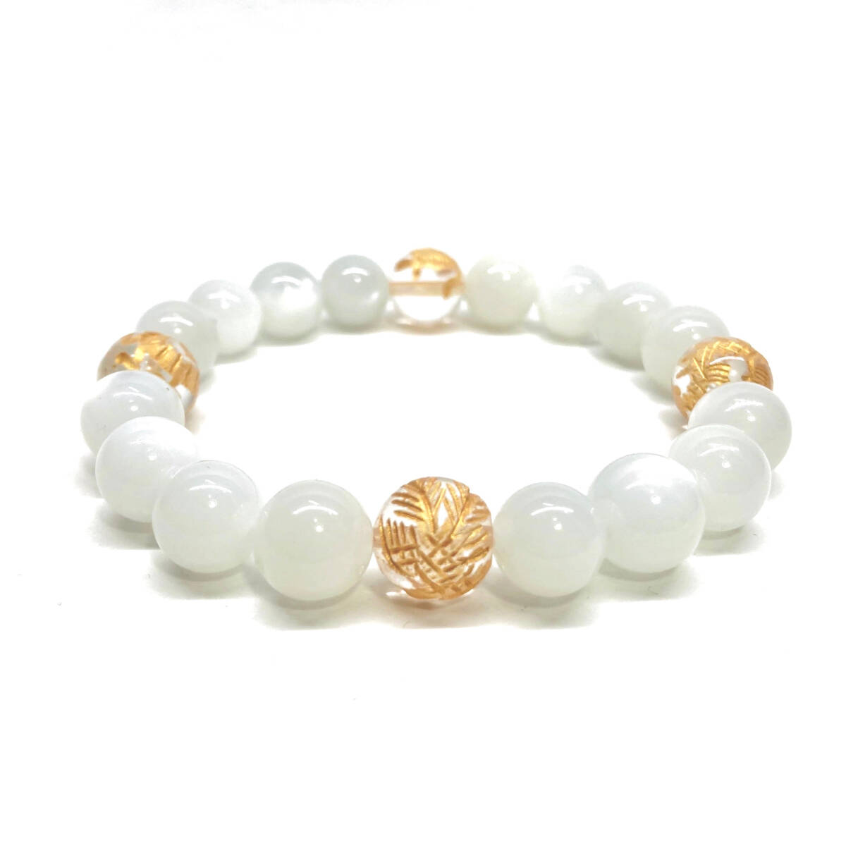 - 10mm 四神獣金彫水晶×ムーンストーン パワーストーン ブレスレット天然石 運気上昇 開運 幸運 恋愛運 青龍 白虎 玄武 朱雀 ☆