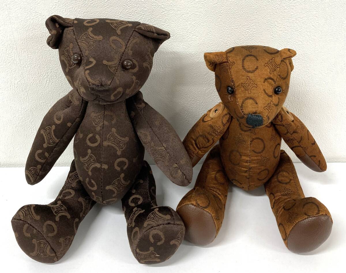 - #12033 セリーヌ ロゴ マカダム ぬいぐるみ ブラウン 茶系 クマ 熊 2体セット