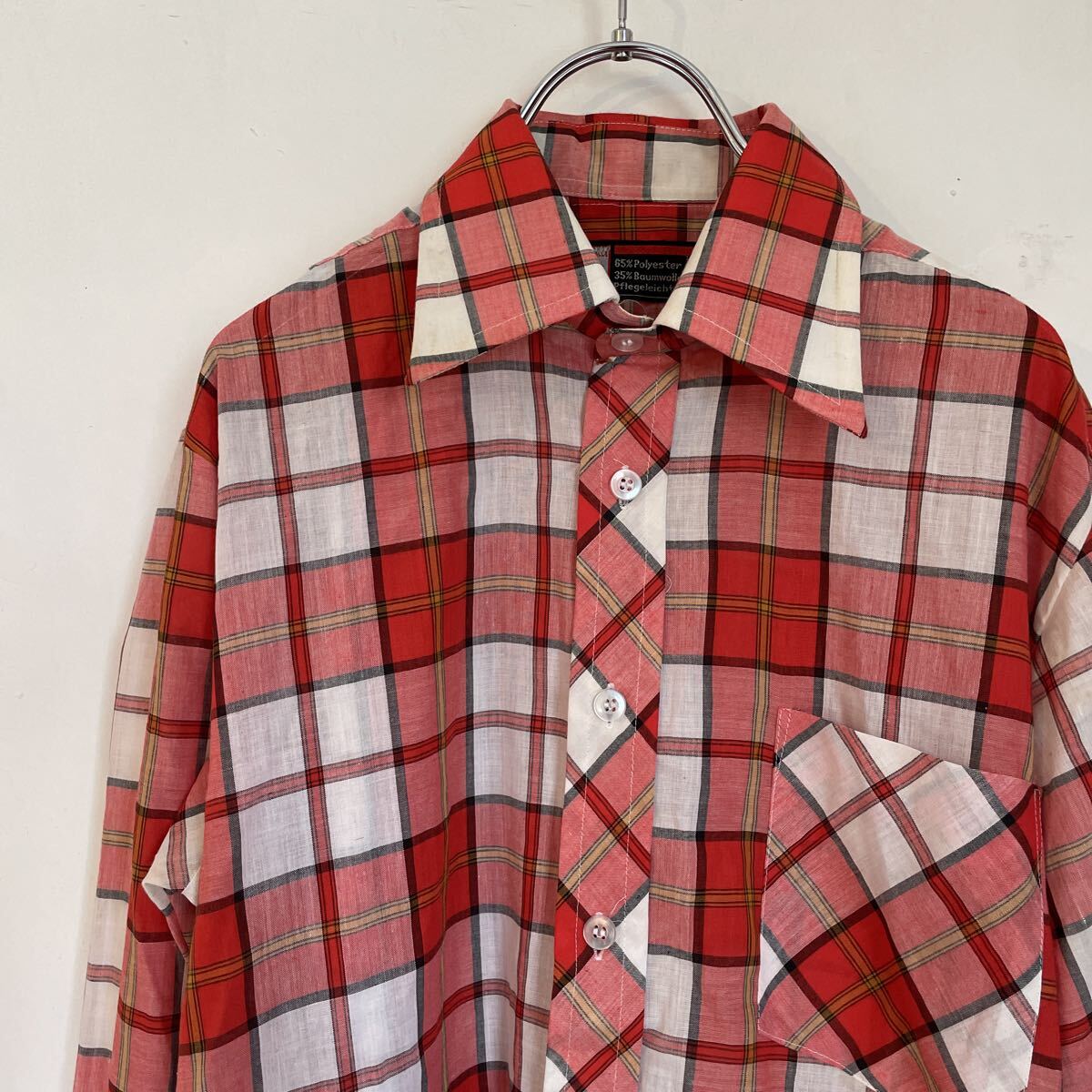 - ビンテージ ヨーロッパ古着 チェック柄 長袖シャツ 5 ヴィンテージ ユーロ 赤系 メンズ レディース 薄手 L