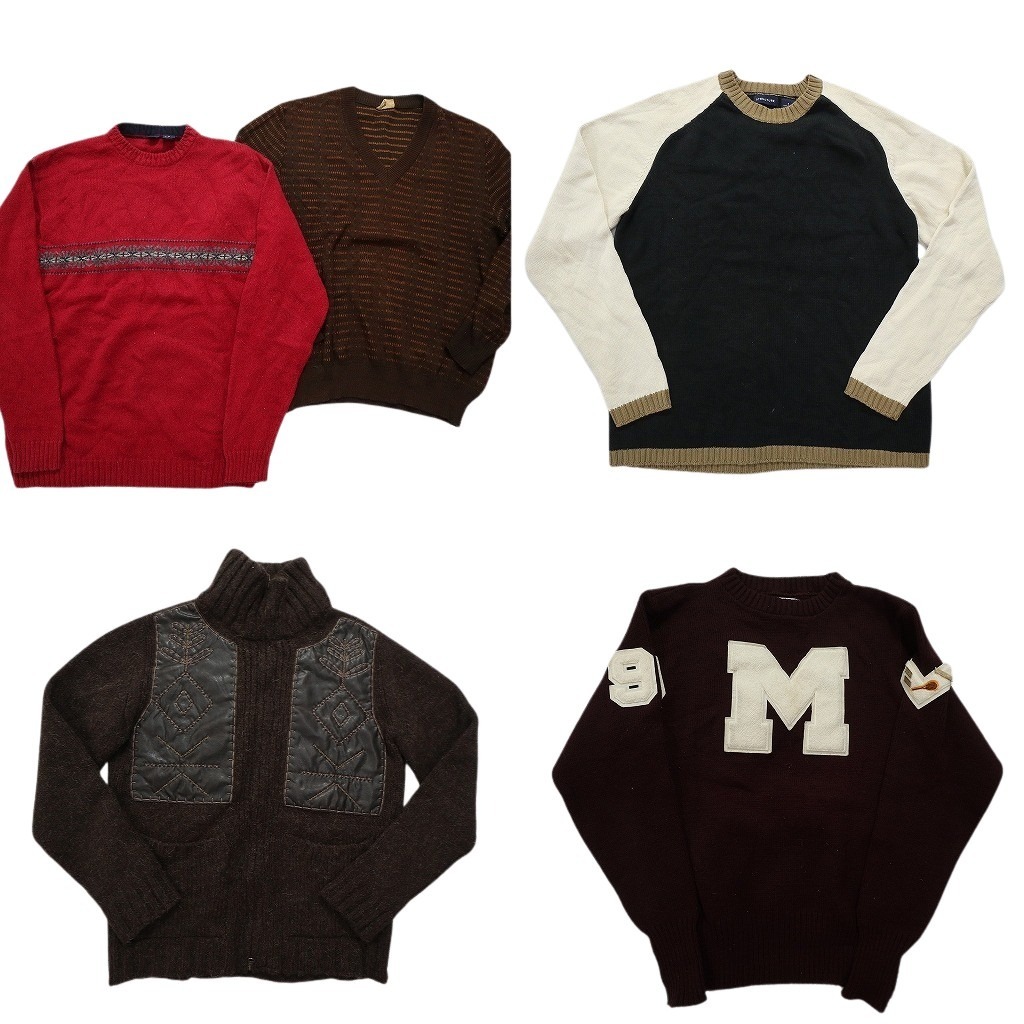> 古着卸 まとめ売り ニットMIX セーター 5枚セット (メンズ S /M ) Vネック ラグラン フルジップ ワッペン 中古 古着 NC3596 1円スタート