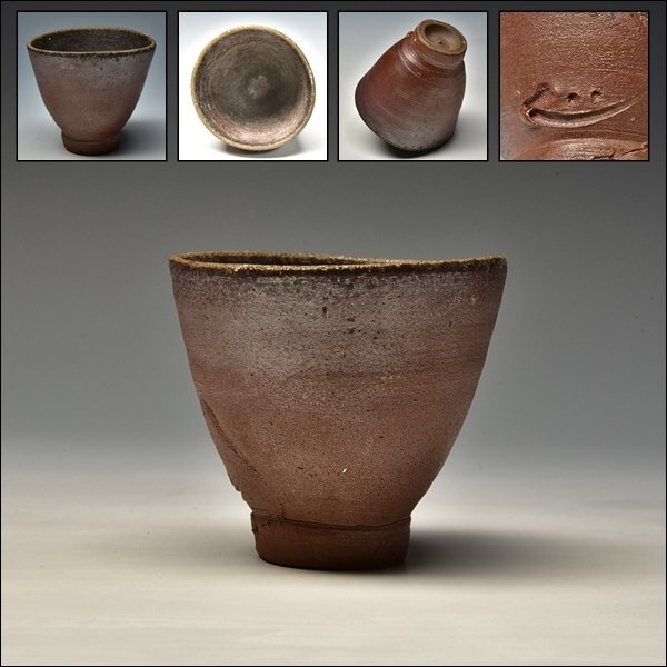 - SP5772 吉本正 上作 備前 酒盃 ぐい呑 盃 杯 酒呑 酒杯 酒器 師 人間国宝 藤原啓