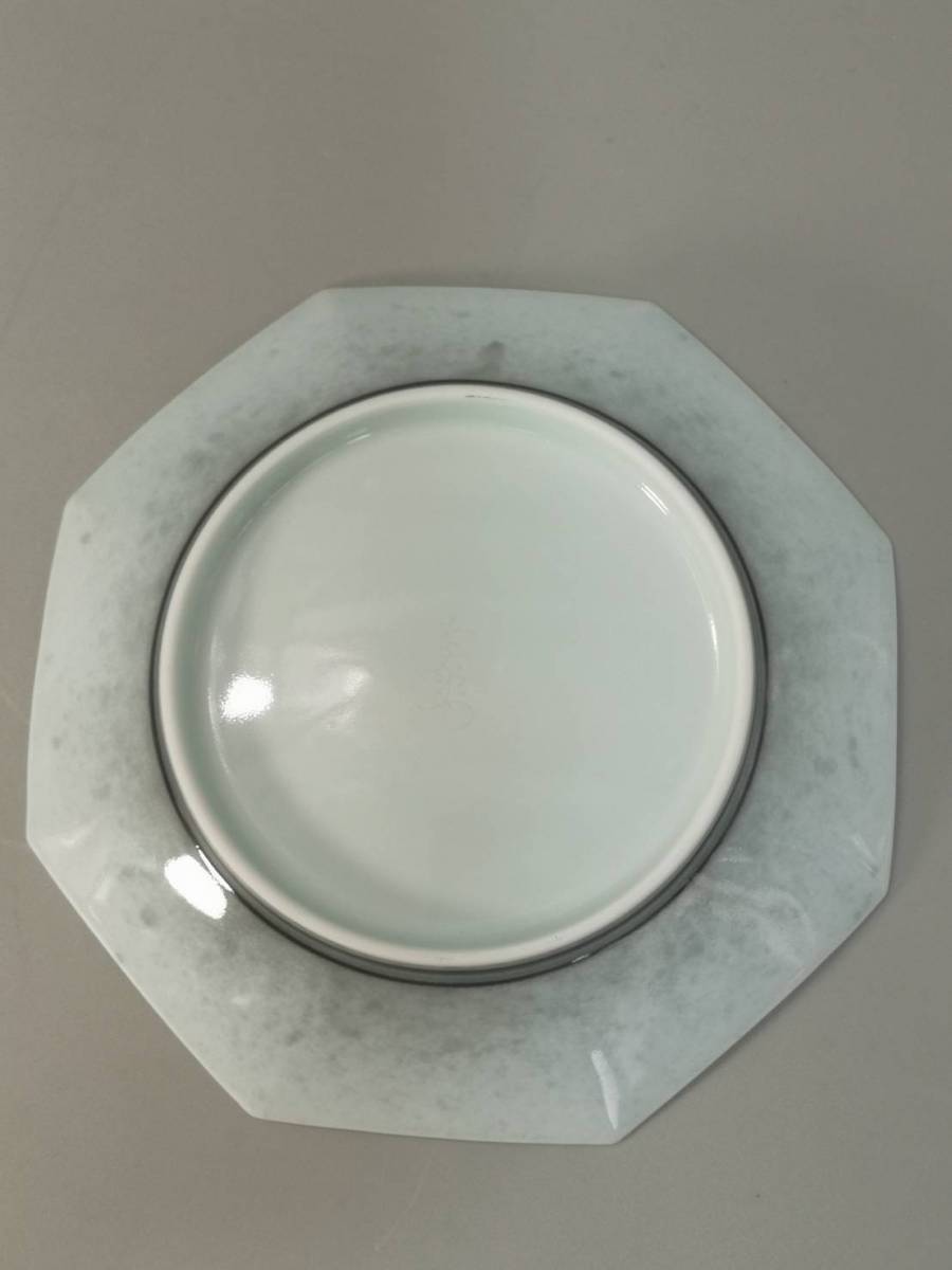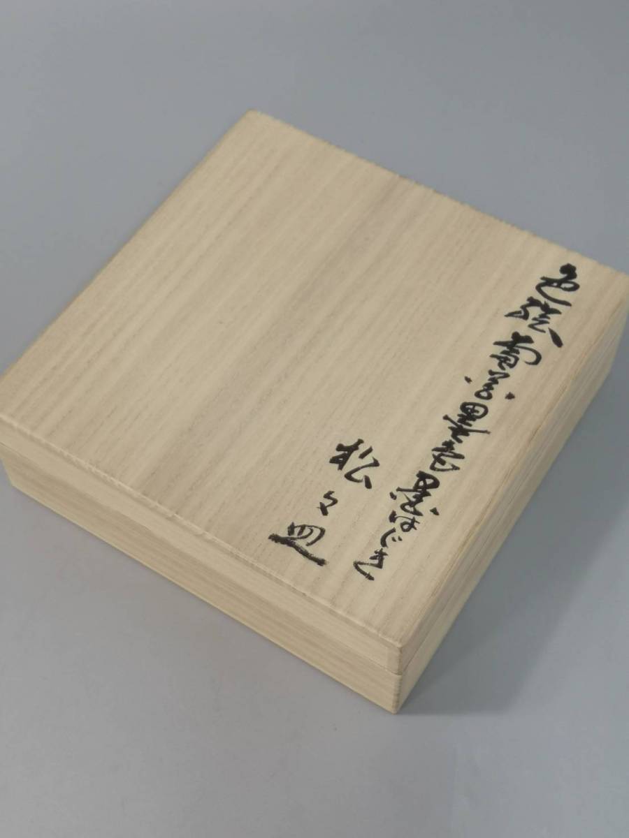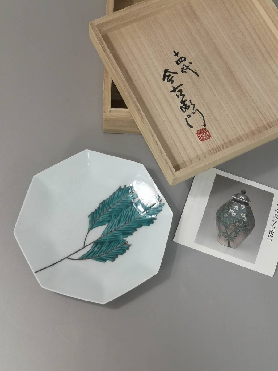 ●人間国宝 十四代 今泉今右衛門 色絵雪花墨色墨はじき 松文皿 共箱 共布 栞です。