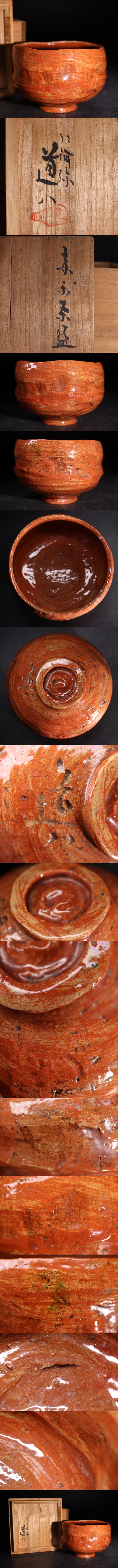 - 仁阿弥道八 造 赤楽茶碗 共箱付 / 高橋道八 道八 京焼 名工 茶碗 茶器 煎茶道具 .G2851