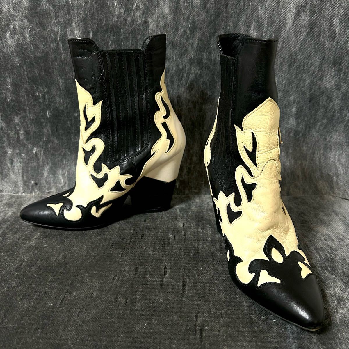> Oasi オアシ ウエスタンブーツ ショートブーツ サイドゴア レザー 37 23.5cm相当 ブラック アイボリー系 *EZ