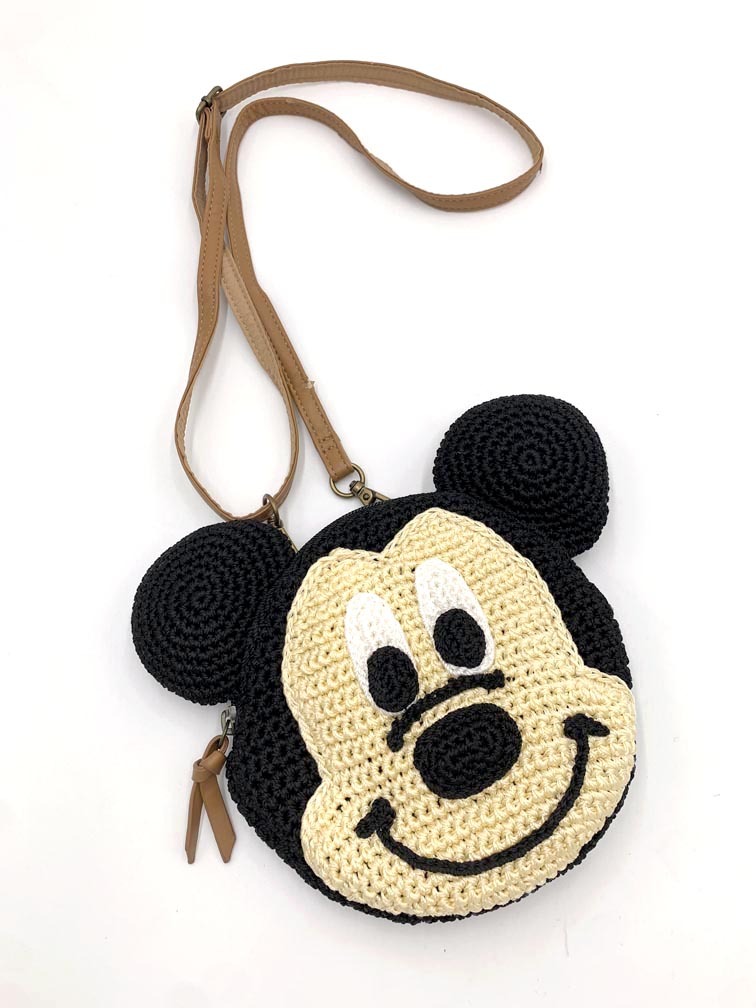 - ゆうパケットOK Disney ディズニー ベルメゾン ミッキーマウス 手編み ショルダー バッグ 黒 ■■