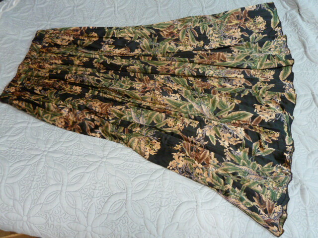 - 春夏秋 2.3回着用 美品 patterntorso アンティカ ブラック アートお花柄 サテン プリーツ加工マキシ丈スカート F レタパ600円発送 同梱OK