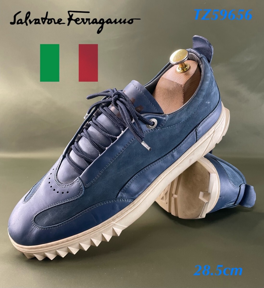 - 名機降臨!定10万円!イタリア製/最上位コンビカウレザー!フェラガモ【TZ59656】シャークソールレザースニーカー!ネイビー 10-1/2表記