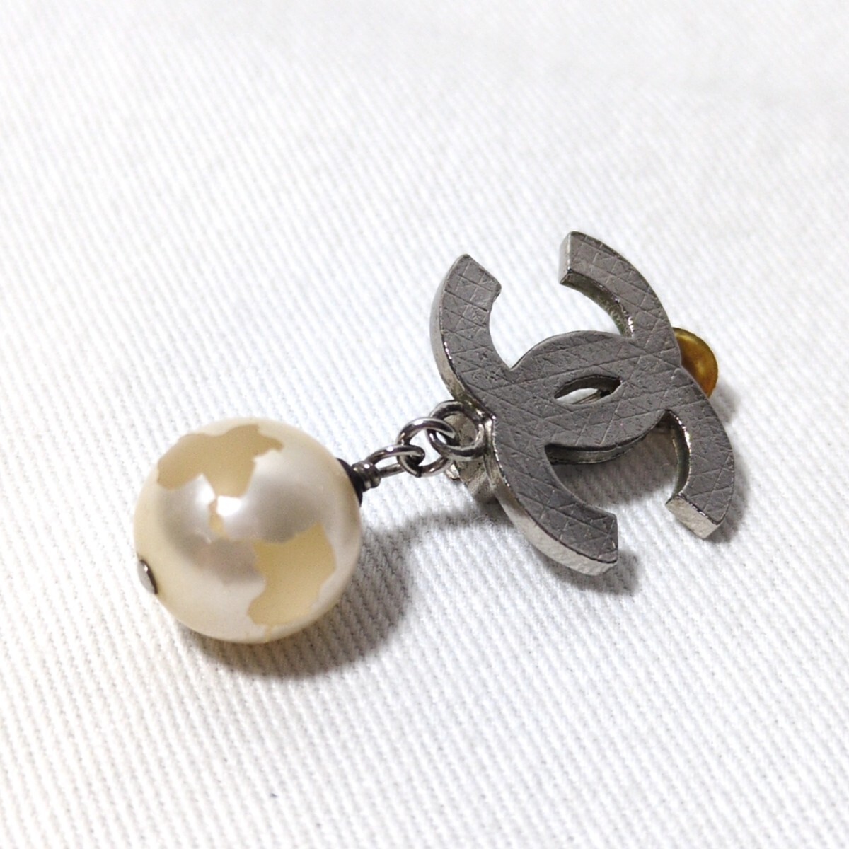 > 片耳のみ CHANEL シャネル シルバーカラー ココマーク フェイクパール イヤリング E11V