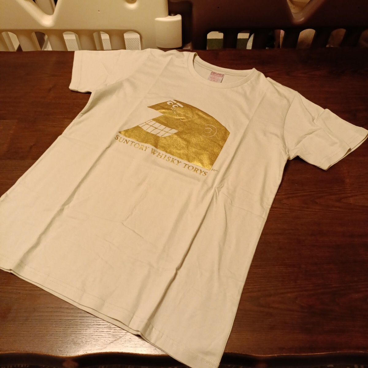 - ・美品 未使用 非売品、サントリー ウイスキー トリス ハイボール 乾杯 半袖Tシャツ、ライトグレー×ゴールドプリント、送料無料