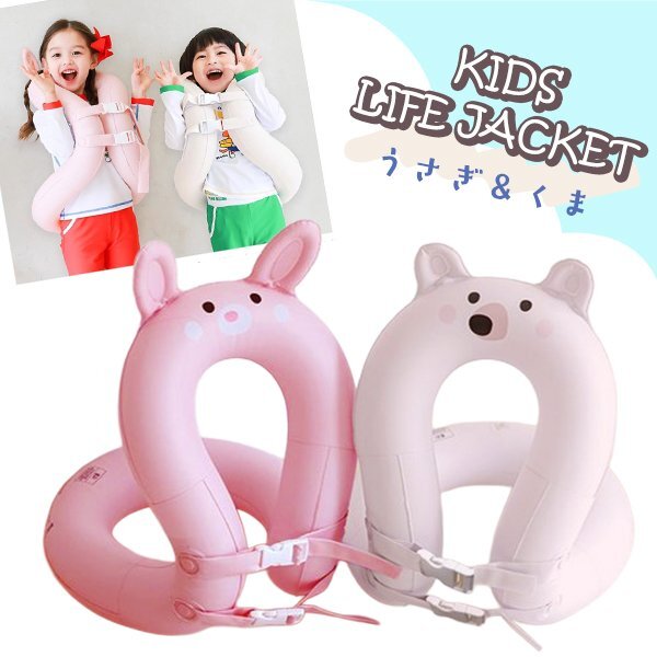 - アニマル ライフジャケット くま うさぎ キッズ フローティングベスト ライフチューブ 浮輪 浮き輪 フロートベビーバックル ネックフロート