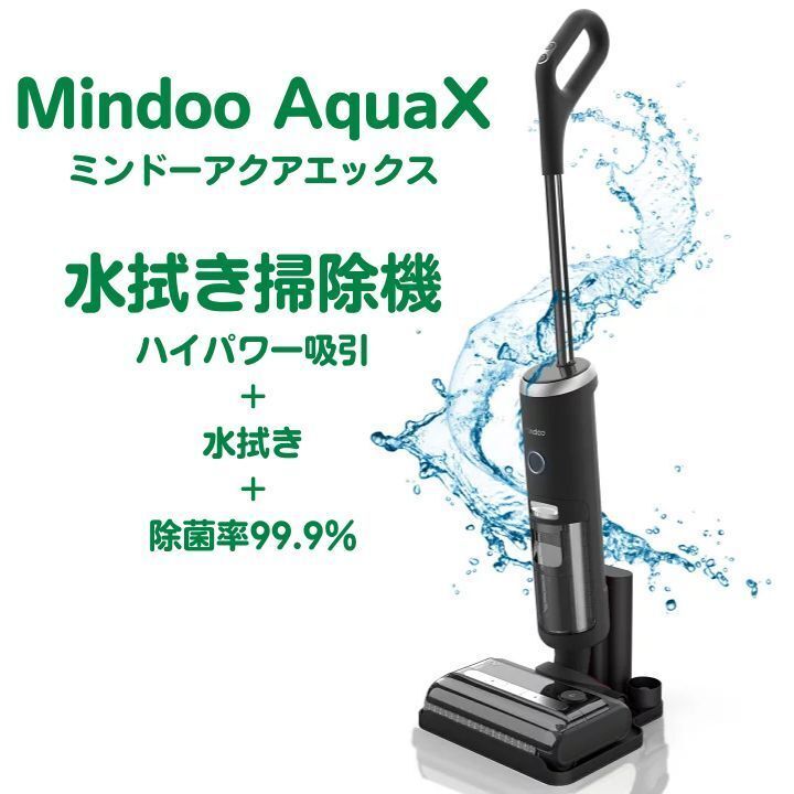 > 【新品未使用】mindoo AquaX ミンドーアクアエックス 水拭き掃除機 MIA-N001-BLK TV通販番組 人気商品 ブラック 黒