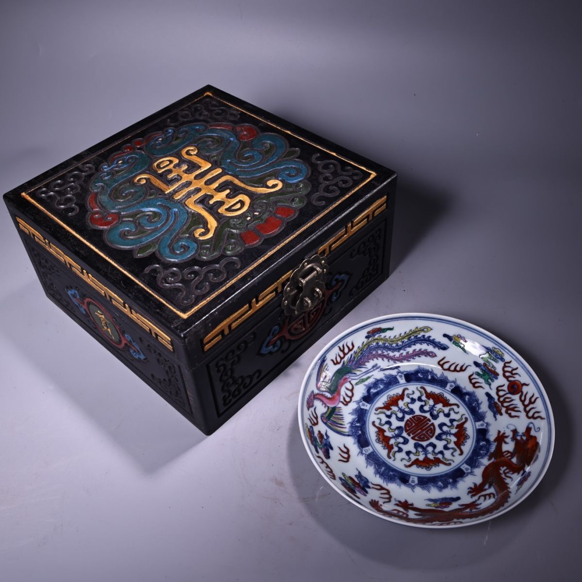 - 【永】清時代 大清雍正年製 斗彩龍鳳紋盤 漆盒 古陶磁器 陶芸 皿 中国陶瓷器 唐瓷 置物擺件 古美術品 古賞物 旧家蔵出 中国唐物 A285