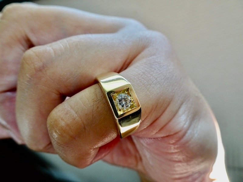 - 仁尾彫金『一つ星ジルコニア、マス留めゴールドリング』ハンドメイド501b