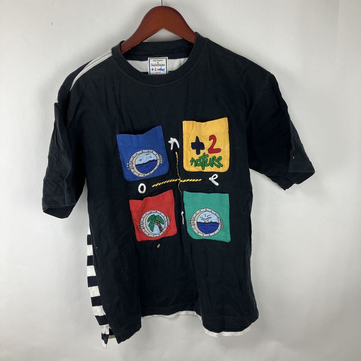 > カステルバジャック 半袖Tシャツ ブラック Tシャツ トップス 半袖 ネイビー 古着 プリント 3 カラフル コットン CASTELBAJAC
