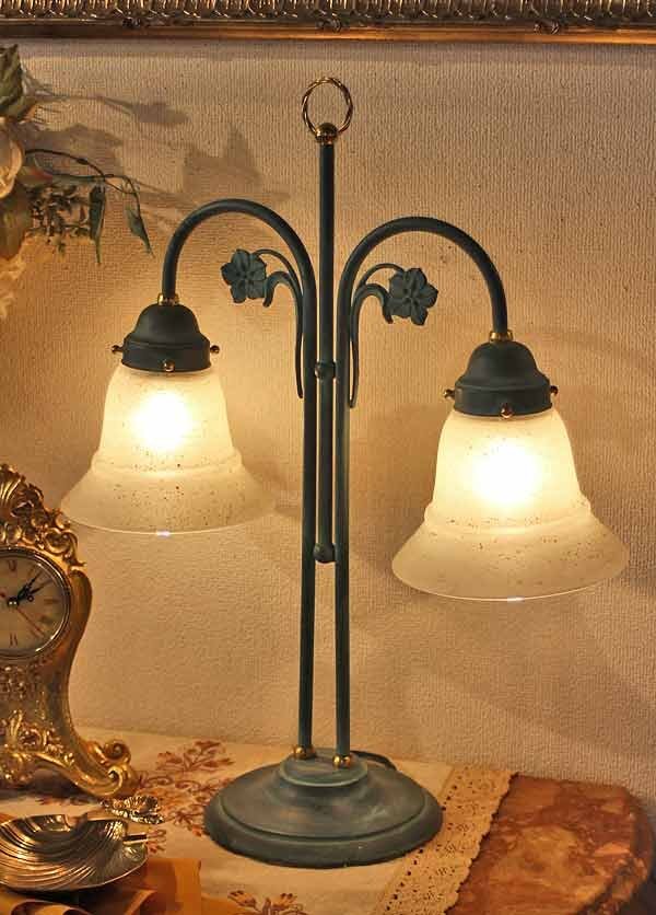 > 輸入雑貨 ランプ テーブルランプ 2灯 スタンド リビングスタジオ 直輸入 アンティーク 青銅風 ブロンズ風 ガラスシェード TL4 送料無料