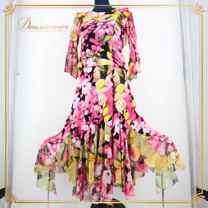 - 社交ダンス 衣装 スタンダード ツーピース 上下セット セットアップ パーティ衣装 女性用 レディース オールシーズン 黄色 黒 緑 ピンク系