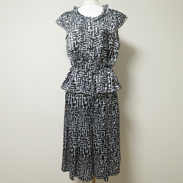 > #snc レリアン Leilian セットアップ 11 グレー系 黒 総柄 キャップスリーブ ラインストーン 薄手 レディース [945667]