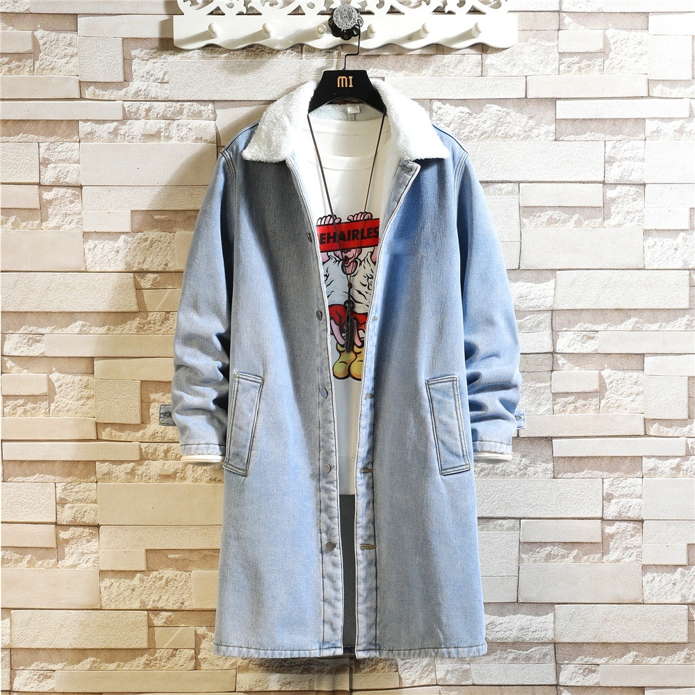 - 裏フリース デニムコート メンズ・ 新品 裏起毛 厚手コート 裏ボア ボアコート ロング Gジャン ジージャン アウター【F644】ブルー L