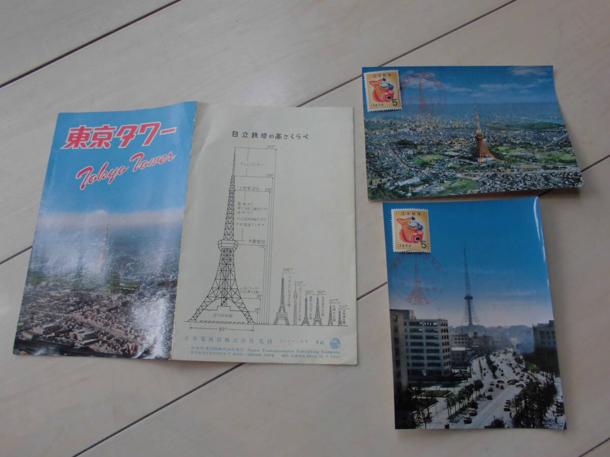 - 昭和33年12月23日 東京タワー完成記念風景印押印年賀鯛えびす切手初日カバー絵葉書はがき 2枚組日本電波塔株監修日本交通出版発行絵葉書