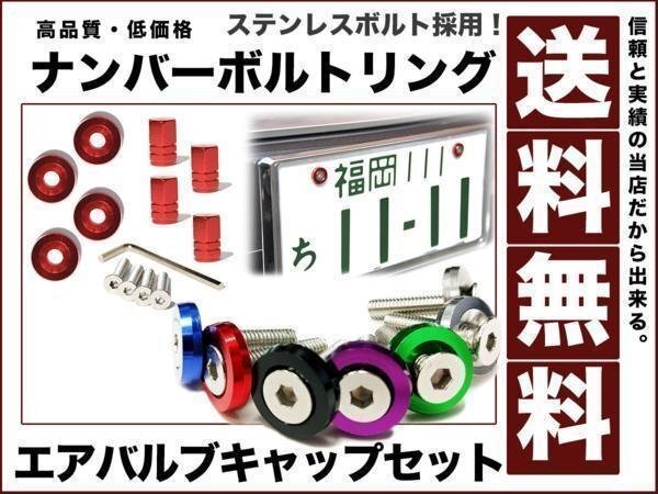 - ステンレス製 ナンバーボルトリング エアバルブキャップset赤 レッド アルマイトカラー ロングボルト 送料無料