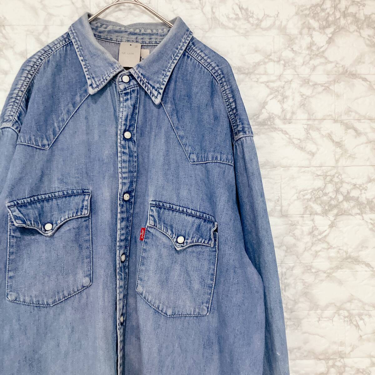 > Euro Levi’s ユーロ リーバイス デニムシャツ 90s ウエスタン オーバーサイズ 希少 XLサイズ 人気 フェード インディゴ ヨーロッパ