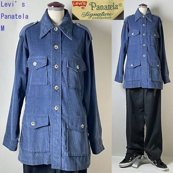 > ★【70s 70年代 レアモデル】名作 ビンテージ Levi's リーバイス PANATELA コーデュロイ サファリ シャツ ブッシュ ジャケット ネイビー M