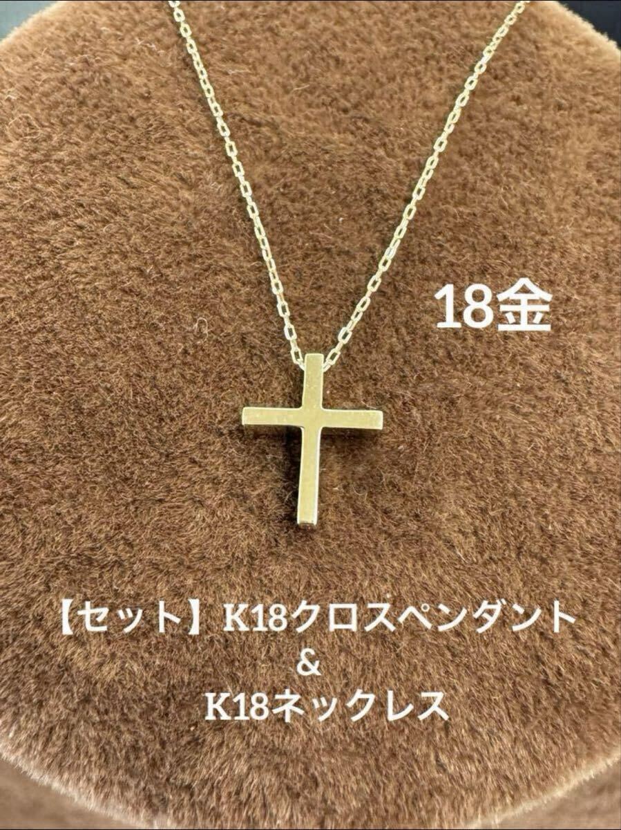> ★【セット】K18クロスペンダントとK18ネックレス【40センチ】 18金 十字架 ネックレス つけっぱなし プレゼント 地金 クロス