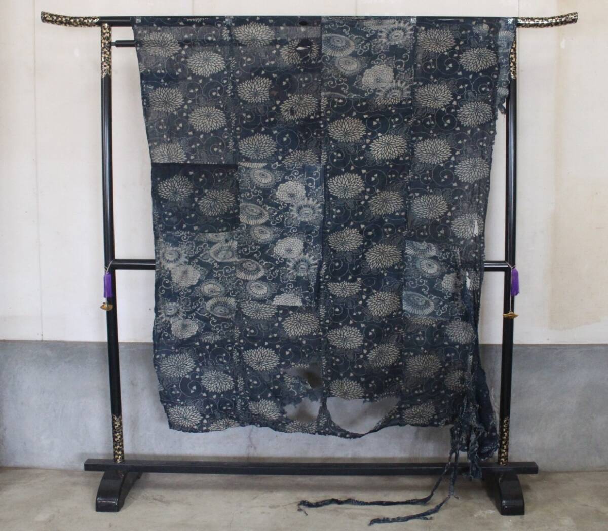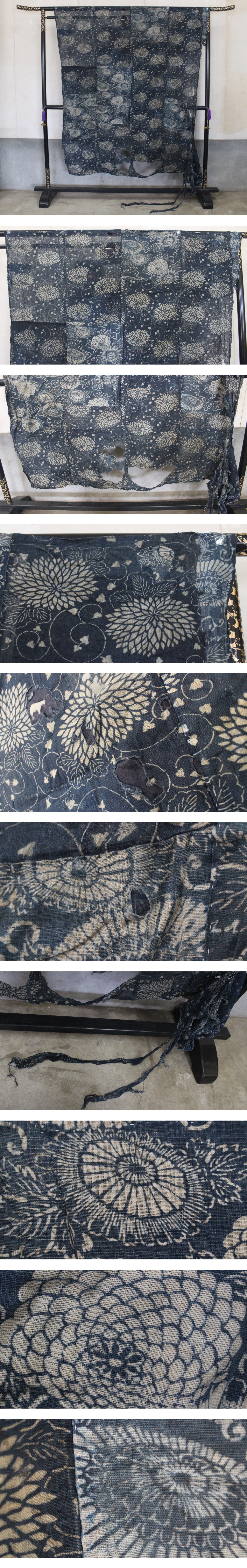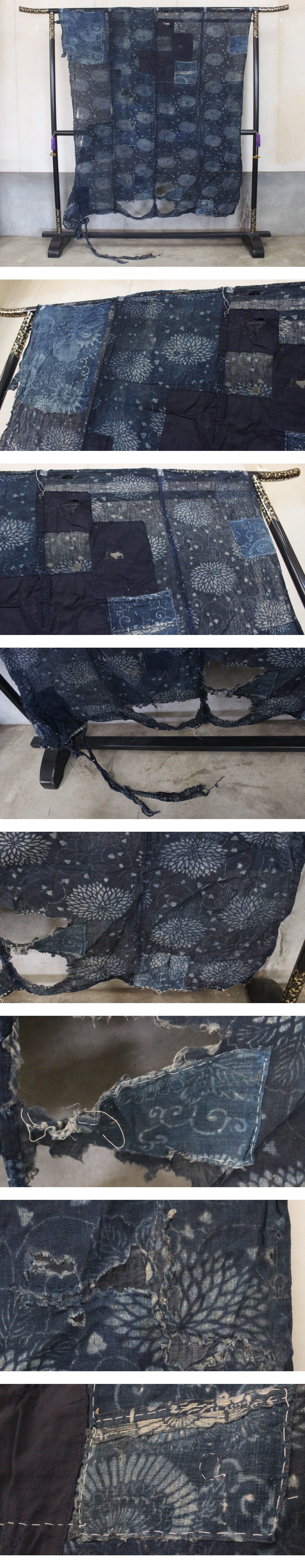 - 藍染木綿 型染 4幅 風呂敷 時代物 日本古布アンティーク生地 ツ16