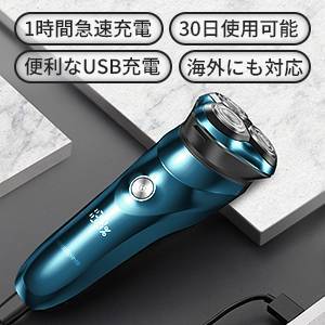 - 3枚刃メンズ電気シェーバー 1時間急速充電 トリマー付き