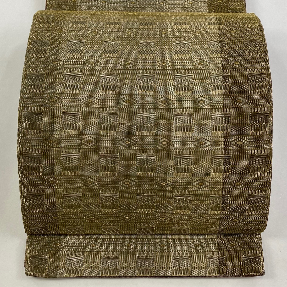 - 【美品】 袋帯 秀品 証紙 幾何学模様 菱 箔 金色 全通 正絹 【中古】