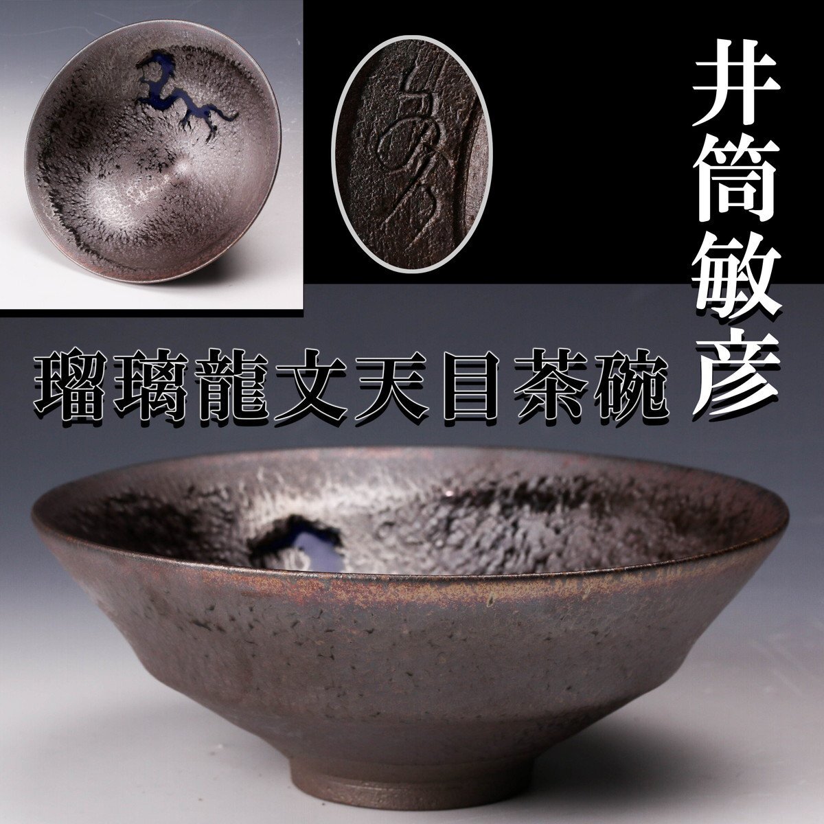 【佳香】井筒敏彦 瑠璃龍文天目茶碗 茶道具 本物保証